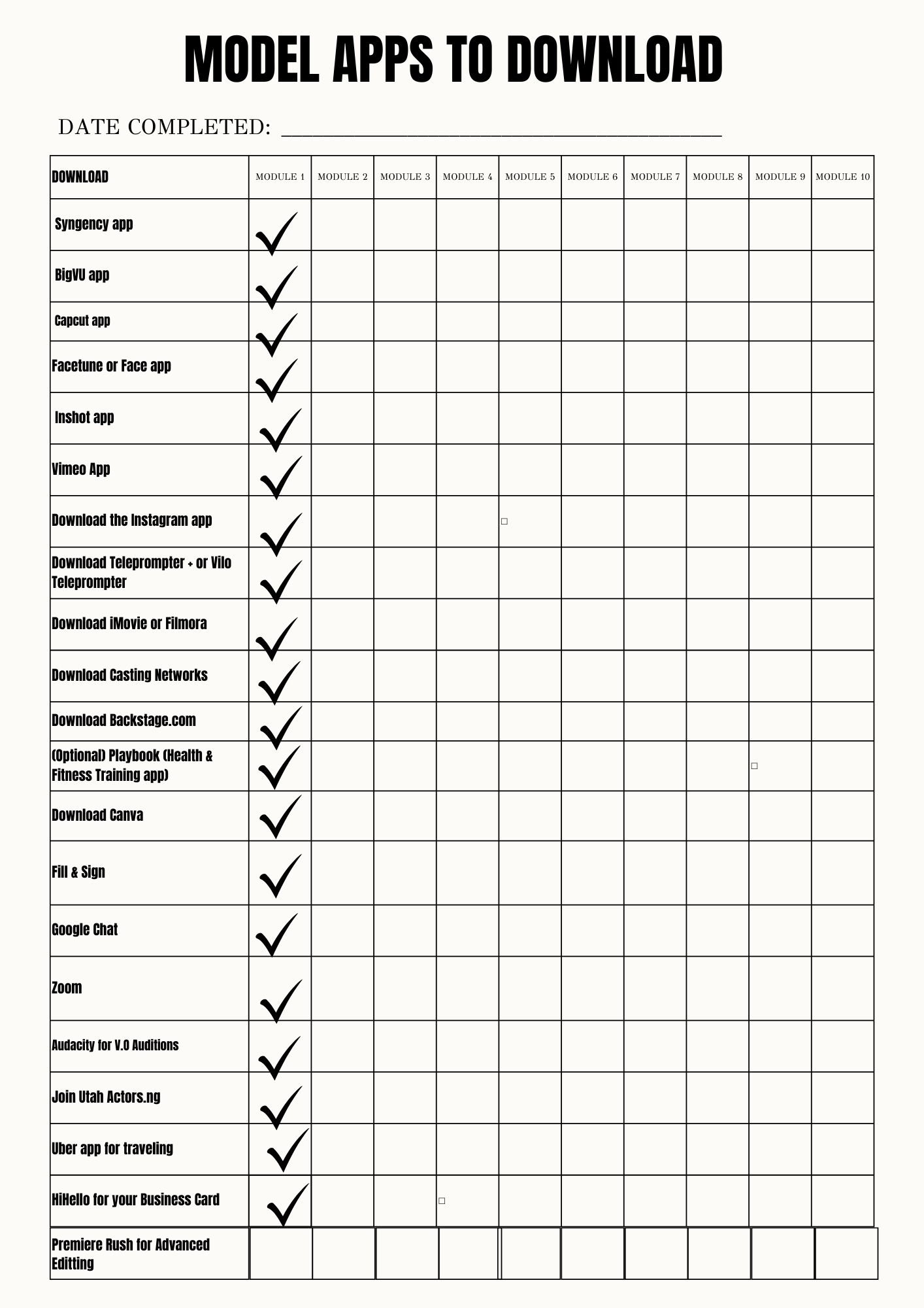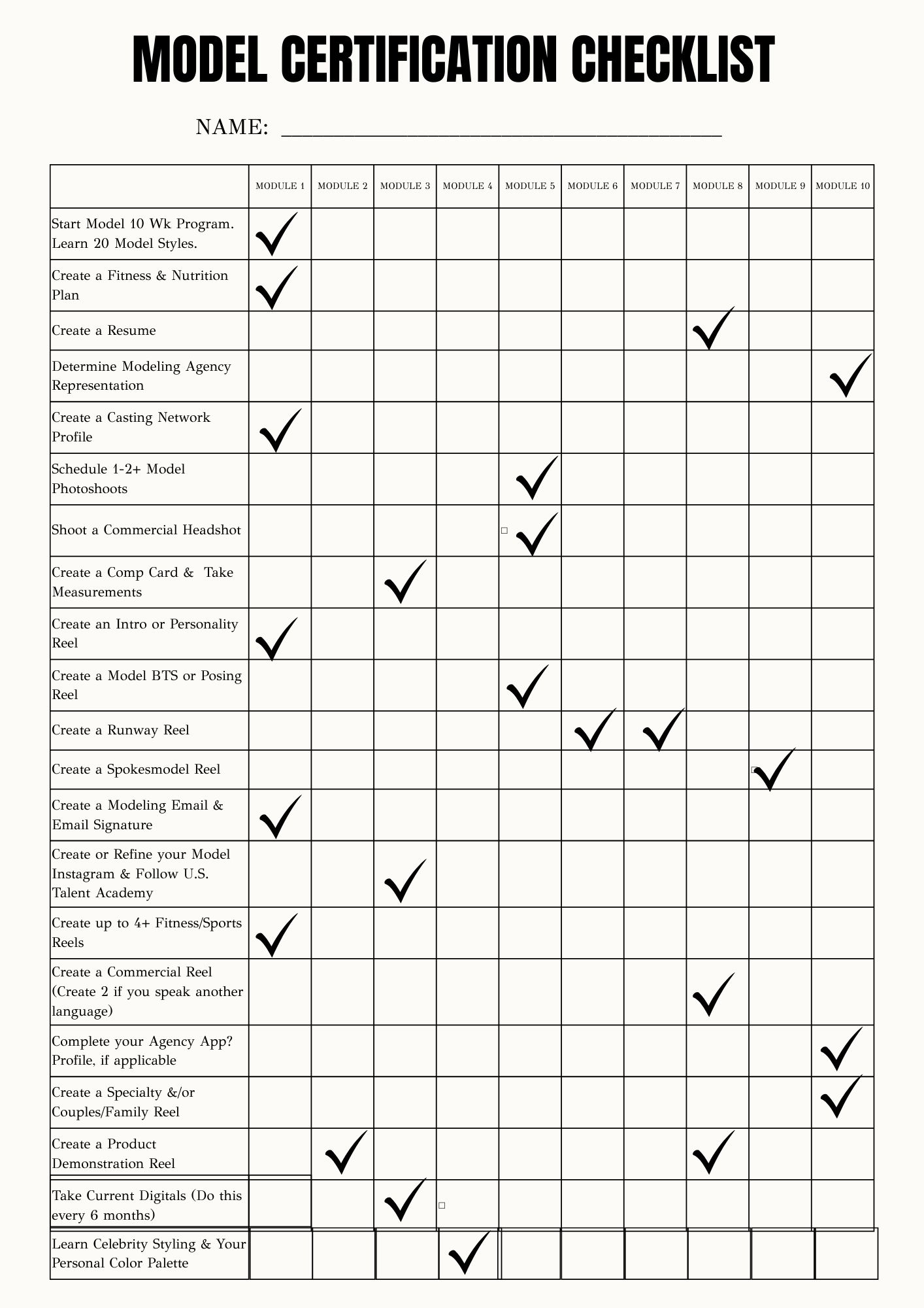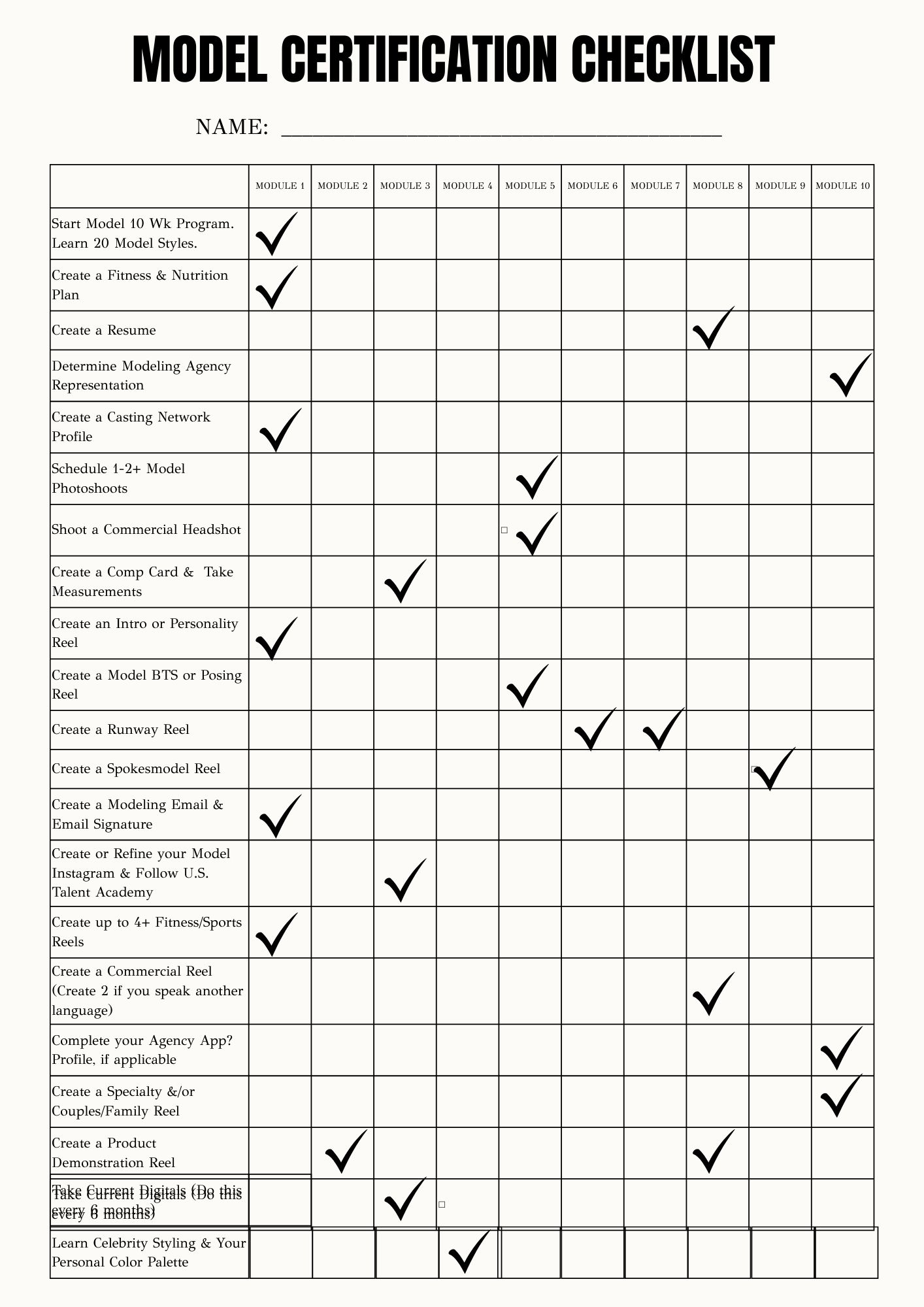 AVAILABLE MODELLING CLASSES SCHEDULE
