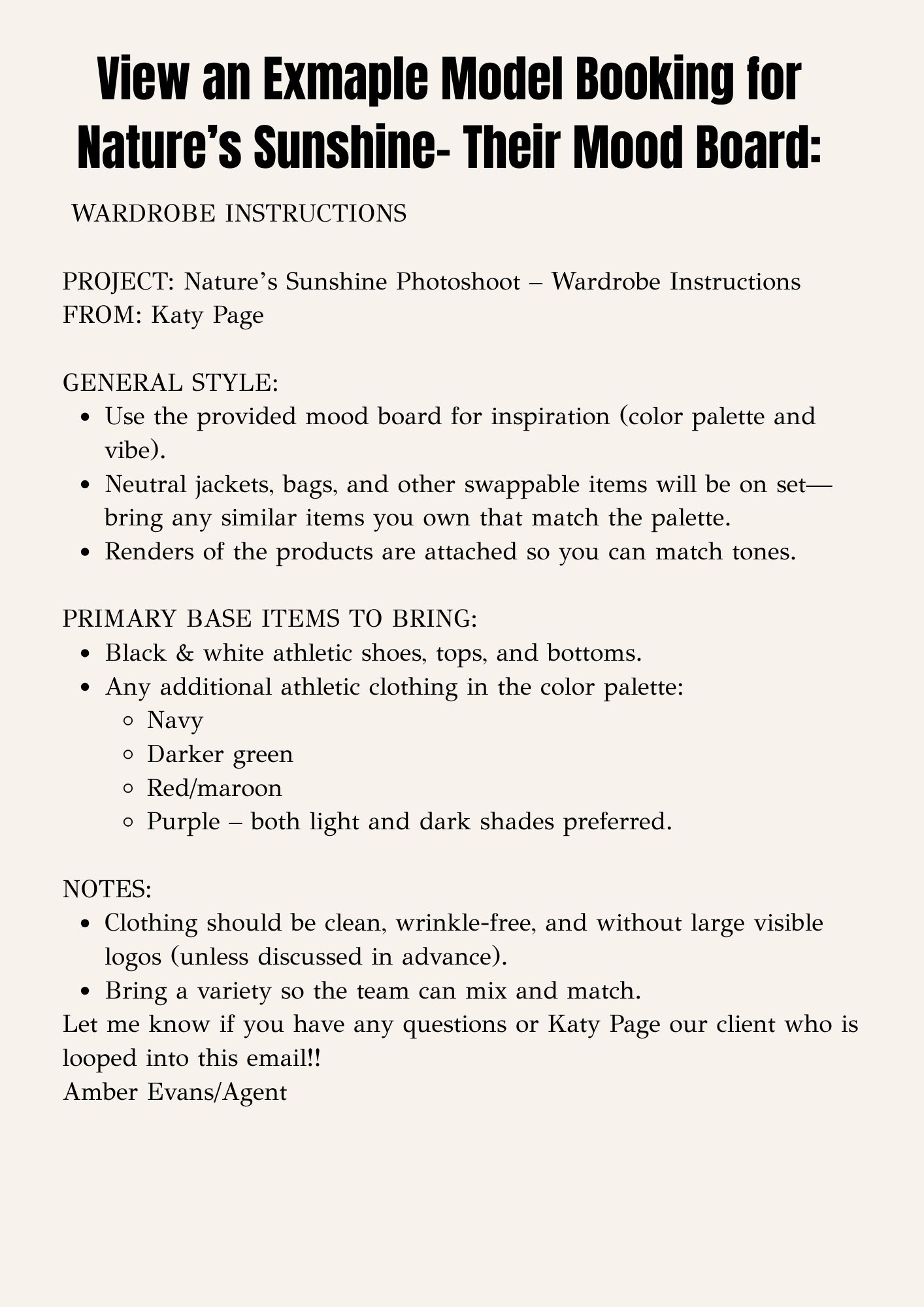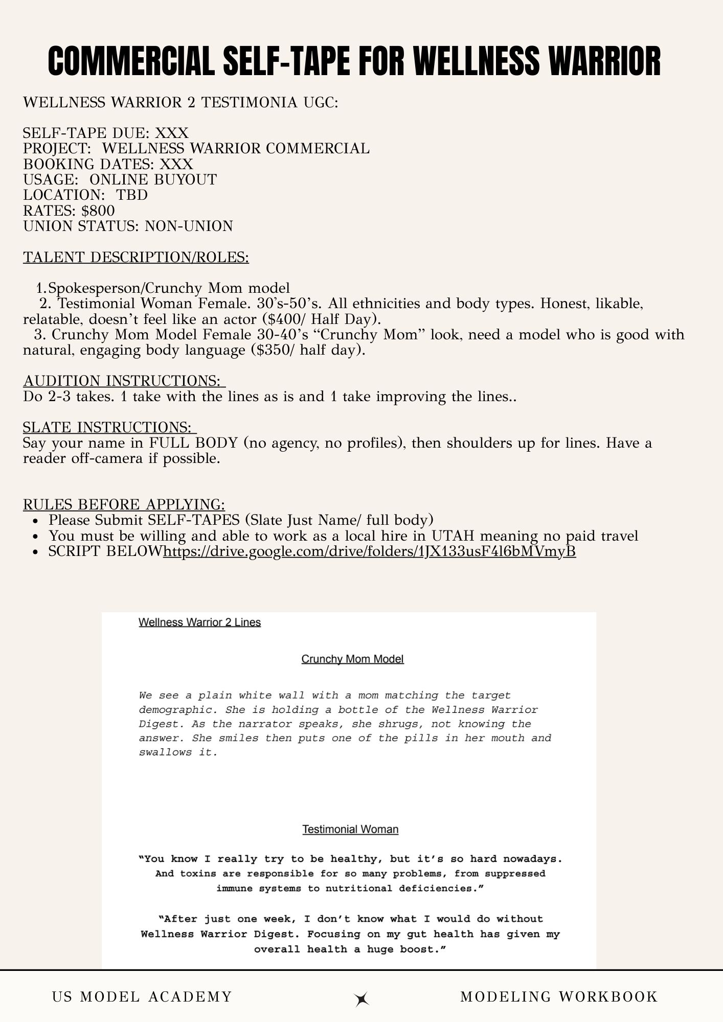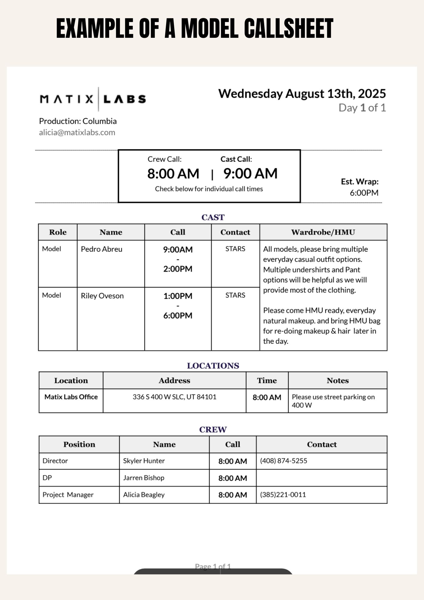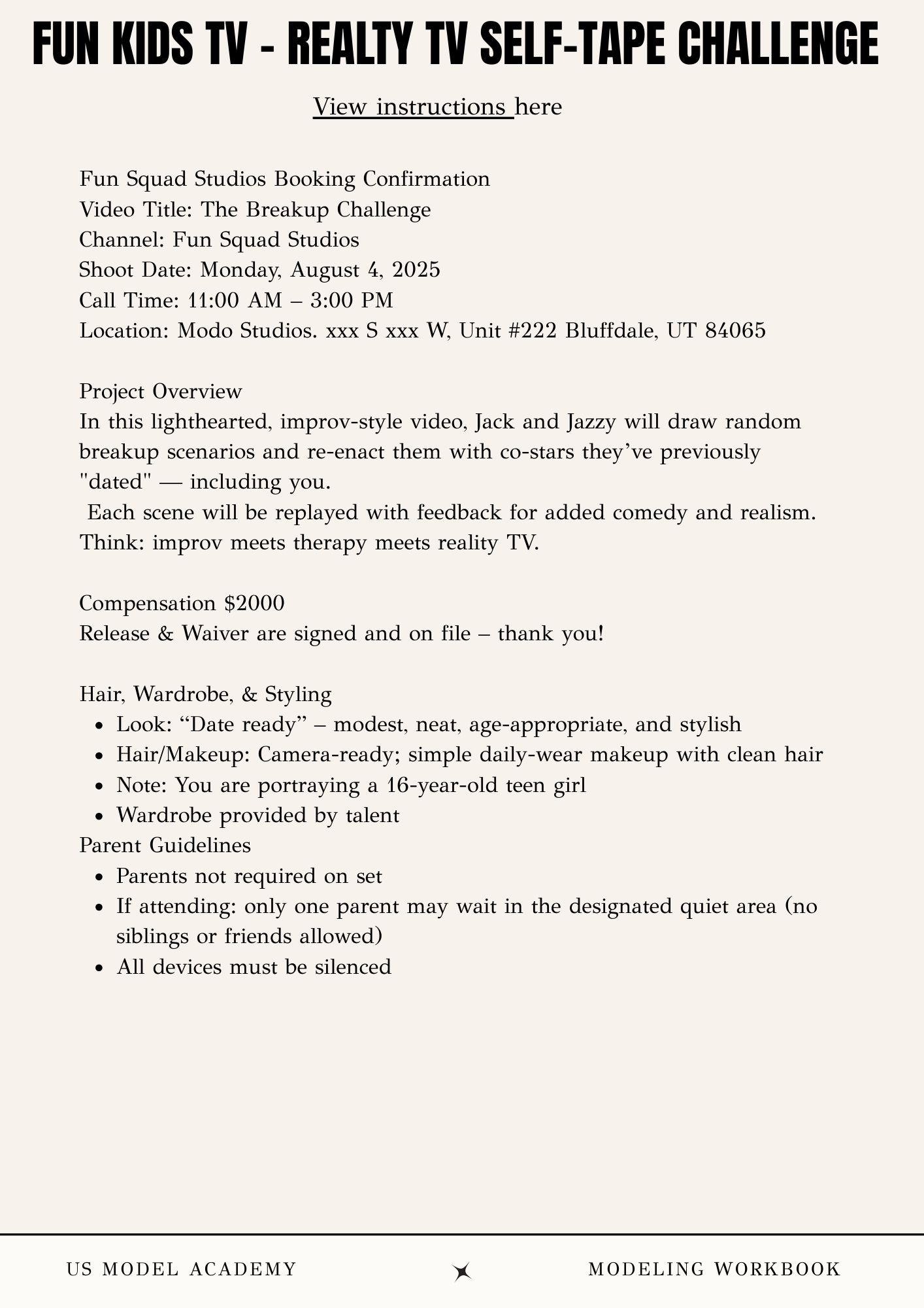 AVAILABLE MODELLING CLASSES SCHEDULE